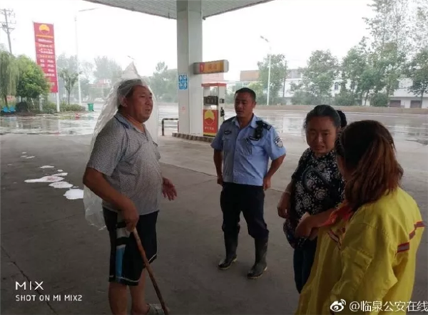 熟悉辖区环境的民警开着警车带上张大姐,在张大爷曾经说过的地点附近沿路询问。功夫不负有心人,在多次询问毫无线索的情况下,民警远远看到一个加油站内停着一辆人力三路车,旁边站着一名头顶塑料布躲雨的老人。随着民警手指的方向,张大姐看了一眼,热泪盈眶:“谢谢你们,谢谢,那就是我爸!”