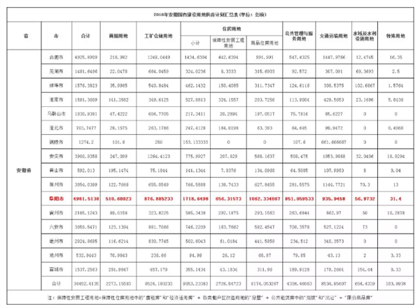 而近日,安徽省国土厅发布了2018年全省16个市国有建设用地供应计划汇总表,从表格可以看出,阜阳不论是从出让总面积还是住宅面积,亦或是商业面积来看,均位于全省首位。商品住房面积达到了15935亩,遥遥领先。